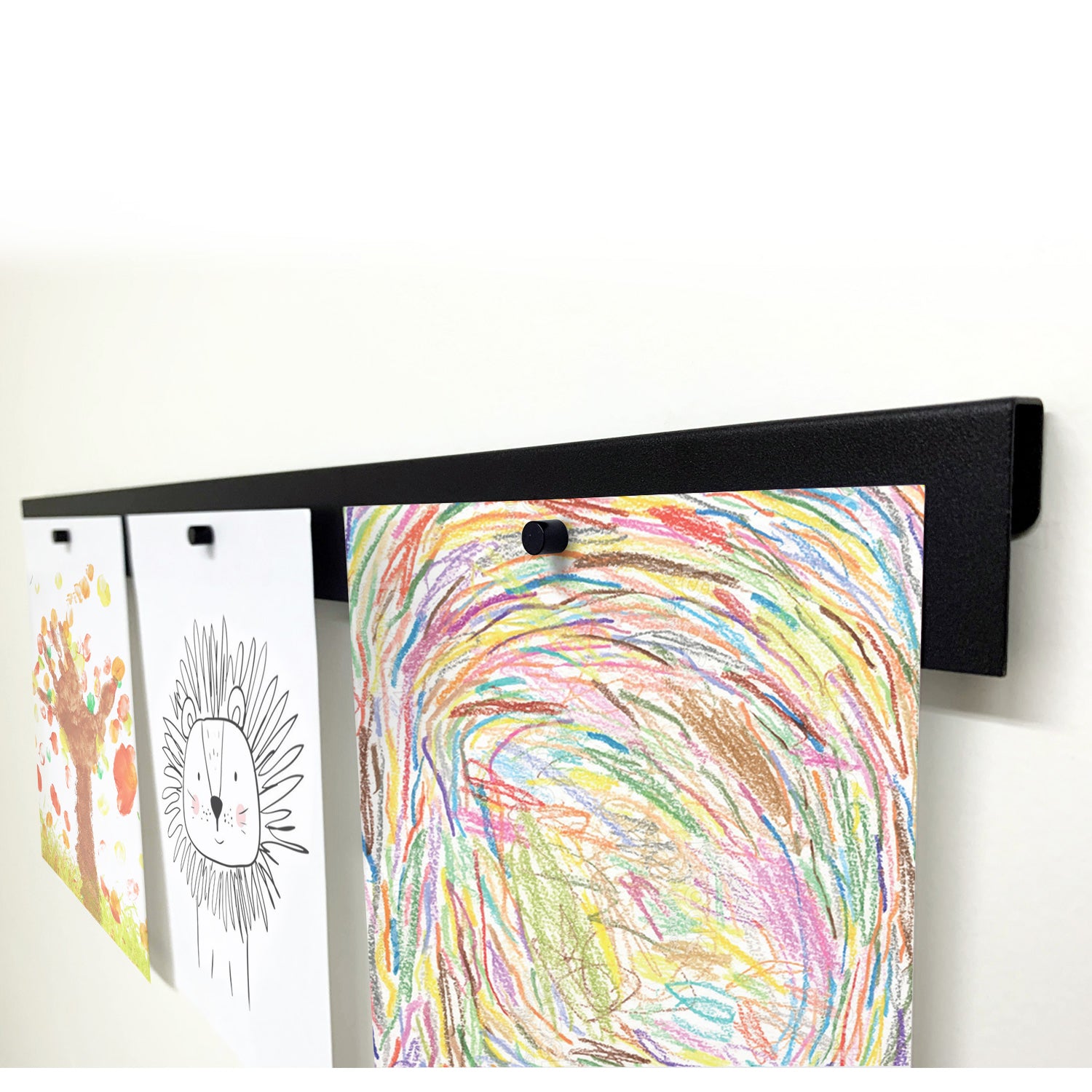 Display your photos, kid’s artwork, posters, cards, tapestries, flags, etc. Place them side by side for one long bar, or stack them for a vertical display. The classic design fits in nicely with any décor. Perfect for homeschool décor, providing a designated location for your kids to hang their artwork. They can also be used to display daily menus, tickets, notes, or recipes.